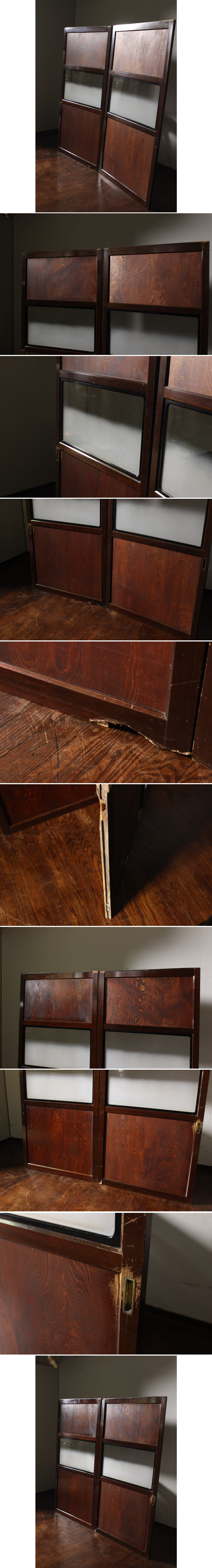 - アンティーク・レトロ 古いガラス入り木製帯戸・2枚 板建具板戸古民家再生カフェパーティション町屋和モダン