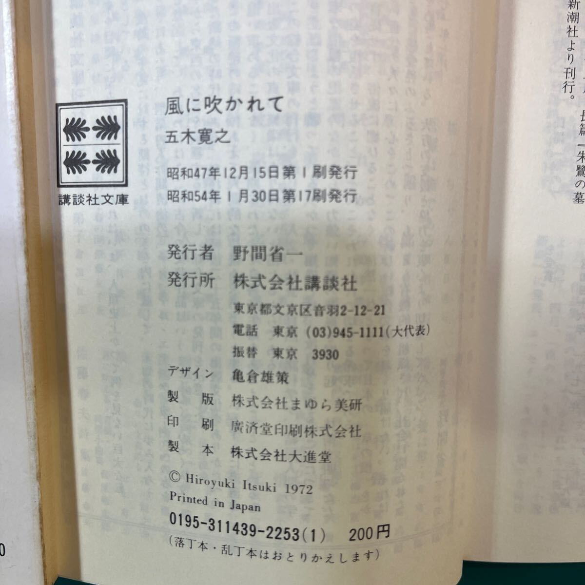 - 風に吹かれて 五木寛之 講談社文庫 中古本 送料無料!