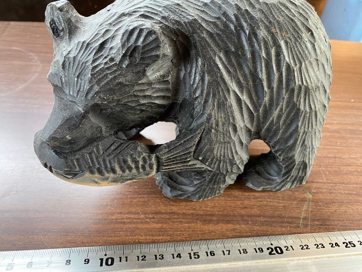 - 【送料無料】 熊 木彫 置物 木彫り 民芸品 クマ オブジェ 彫刻