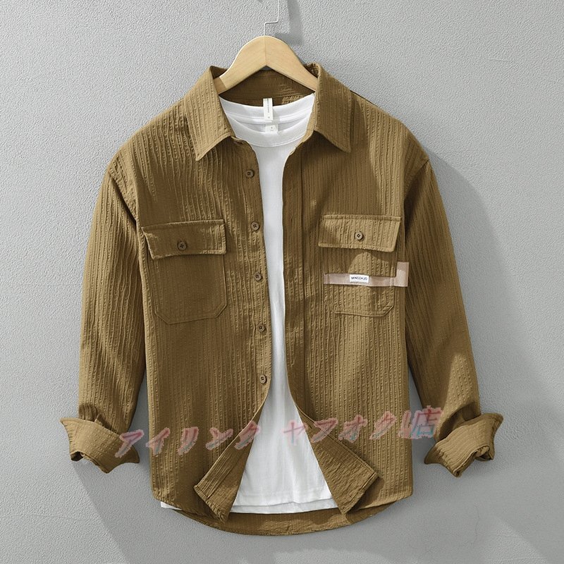 > ☆新品長袖シャツ シャツジャケット カーゴシャツ ワークシャツ メンズ トップス カジュアル 春秋服 ブラウン