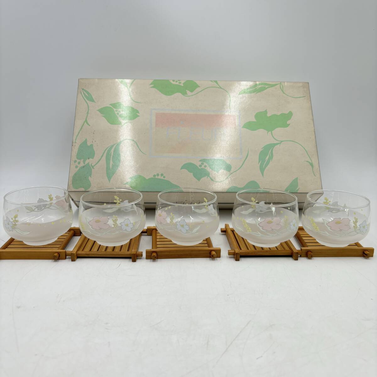 - 【美品】FLEUR 冷茶セット 花柄 コップ/コースター 5セット レトロ アンティーク 1点