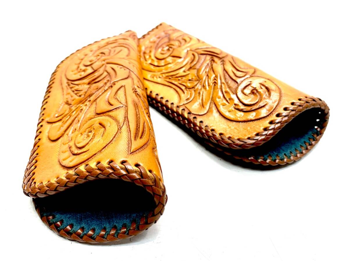 - レザーカービング メガネケース 2点セット 眼鏡 レザークラフト 工芸品 花柄 フラワー ヴィンテージ A8257A99