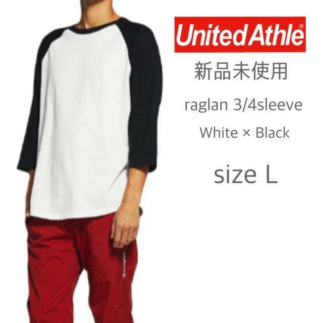- 新品 ユナイテッドアスレ ラグラン 7分袖 Tシャツ ホワイト×ブラック L United Athle 504501 5.6オンス ラグラン 3/4スリーブ
