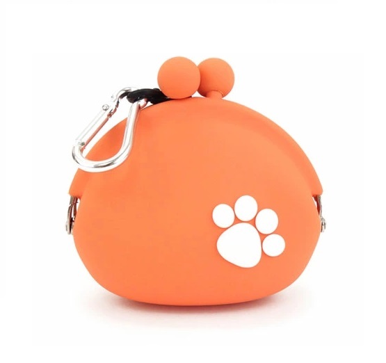 - @【即決】■ぽちのPOCHI■がま口 シリコンポーチ /ライトオレンジ /カラビナ付 /犬 わんこ おやつ入れ /正規品 /財布 小銭入れ