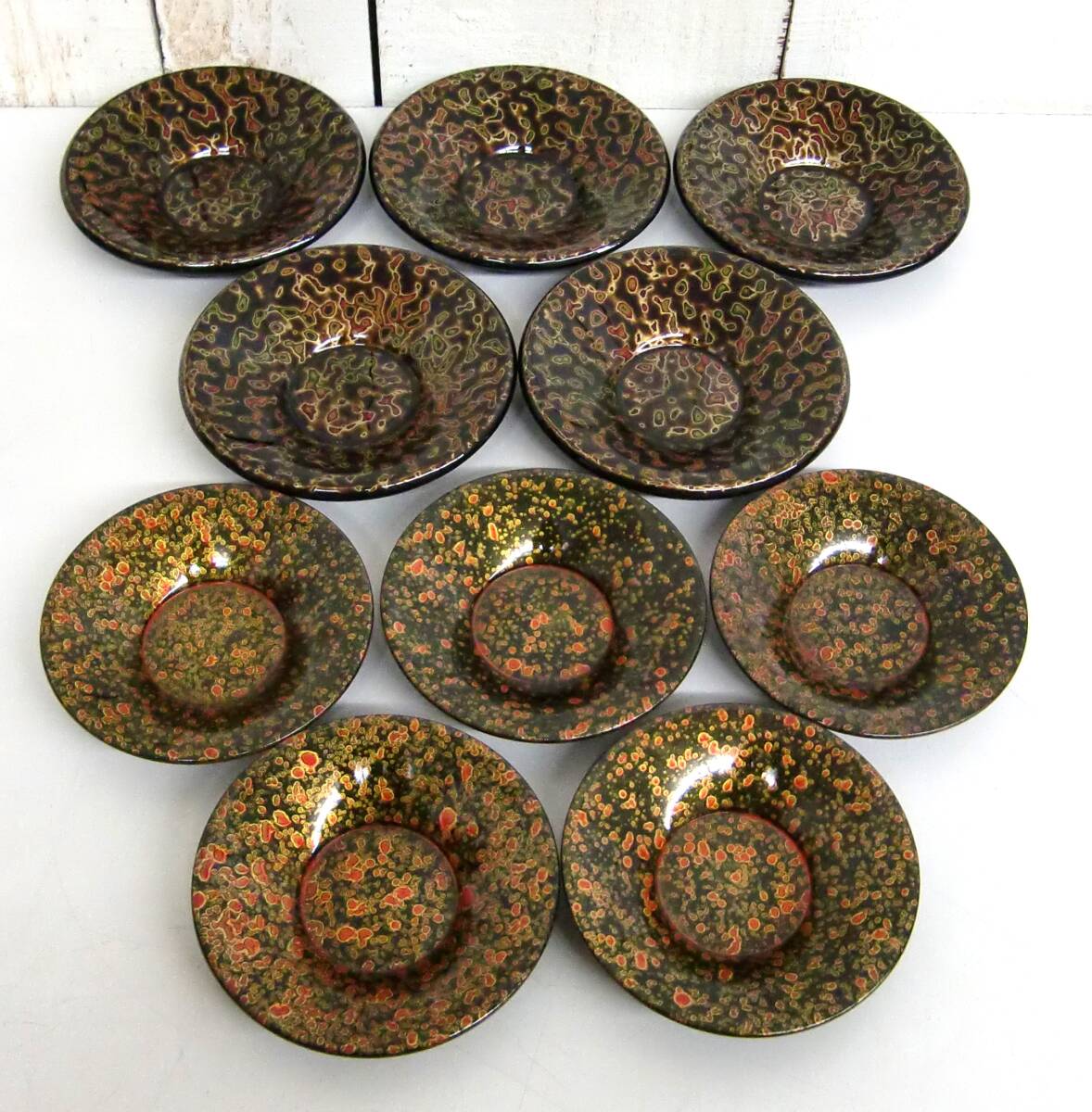 - 伝統工芸 工芸品 工芸美術 *津軽塗?会津塗? *茶托 大小 10点まとめ 10客 *金虫食塗 うるし*お茶 茶道具 茶道 コースター*日本 JAPAN