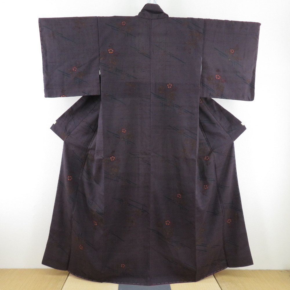 > 小紋 紬地 梅文様 正絹 灰紫色 袷 広衿 カジュアル 仕立て上がり着物 身丈157cm