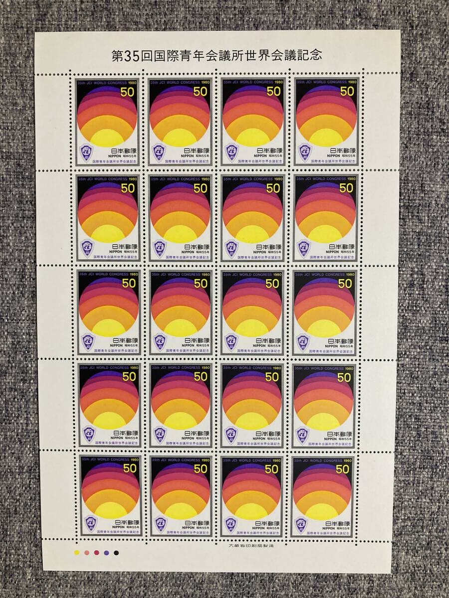 > ★未使用 第35回 国際青年会議所 世界会議記念 エネルギーを象徴的にデザイン化 1980年 昭和55年 記念切手シート 50円 20枚 日本郵便