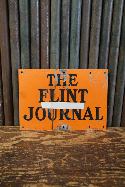 > ビンテージTHEFLINTJOURNAL看板B [gosa-111]検アメリカ/USA/裏面ステンシルロゴNO/1960年代前後頃/MOTORガレージJUNK色褪せオレンジサイン