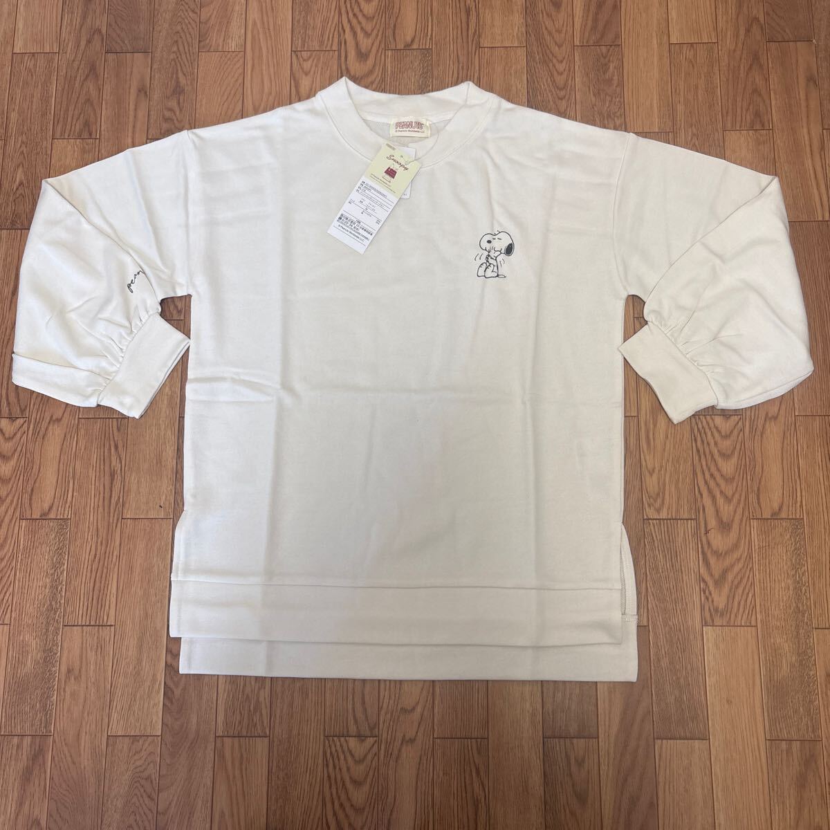 > 未使用●スヌーピー SNOOPY プリント ロング トレーナー/オフ ホワイト/トップス/長袖/スウェット/キャラクター/ワンポイント ★2355-3