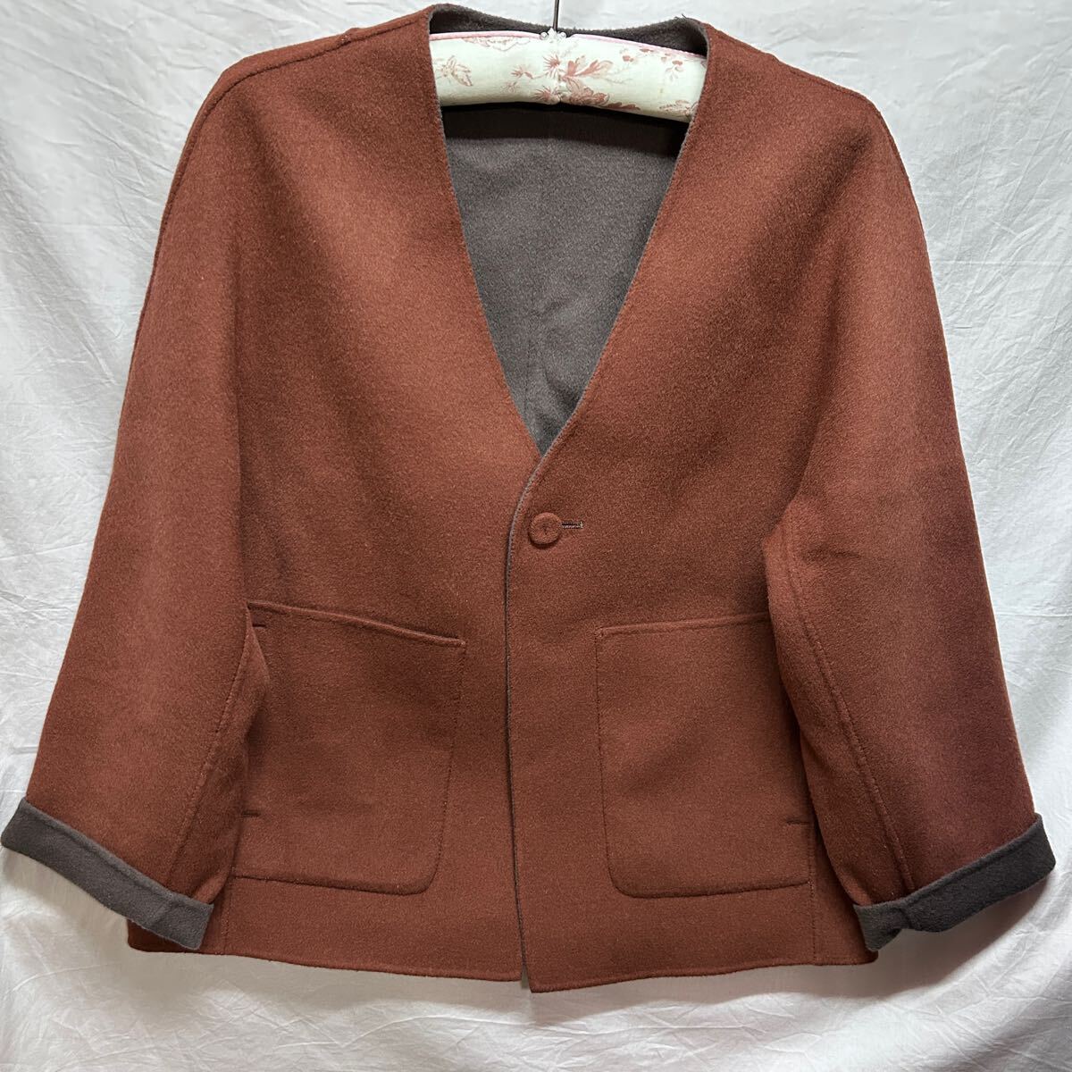 > ★美品★human woman 2way メルトンバイカラーコート ハーフ丈コート リバーコート レッドブラウン×モカグレー 定価3.9万 軽い (11246F