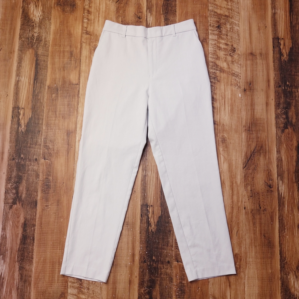 - 美品 リサリサ LiSALiSA テーパードスラックス レディース 麻混 ゴムウエスト 春夏 フリーサイズ ライトグレー NA25