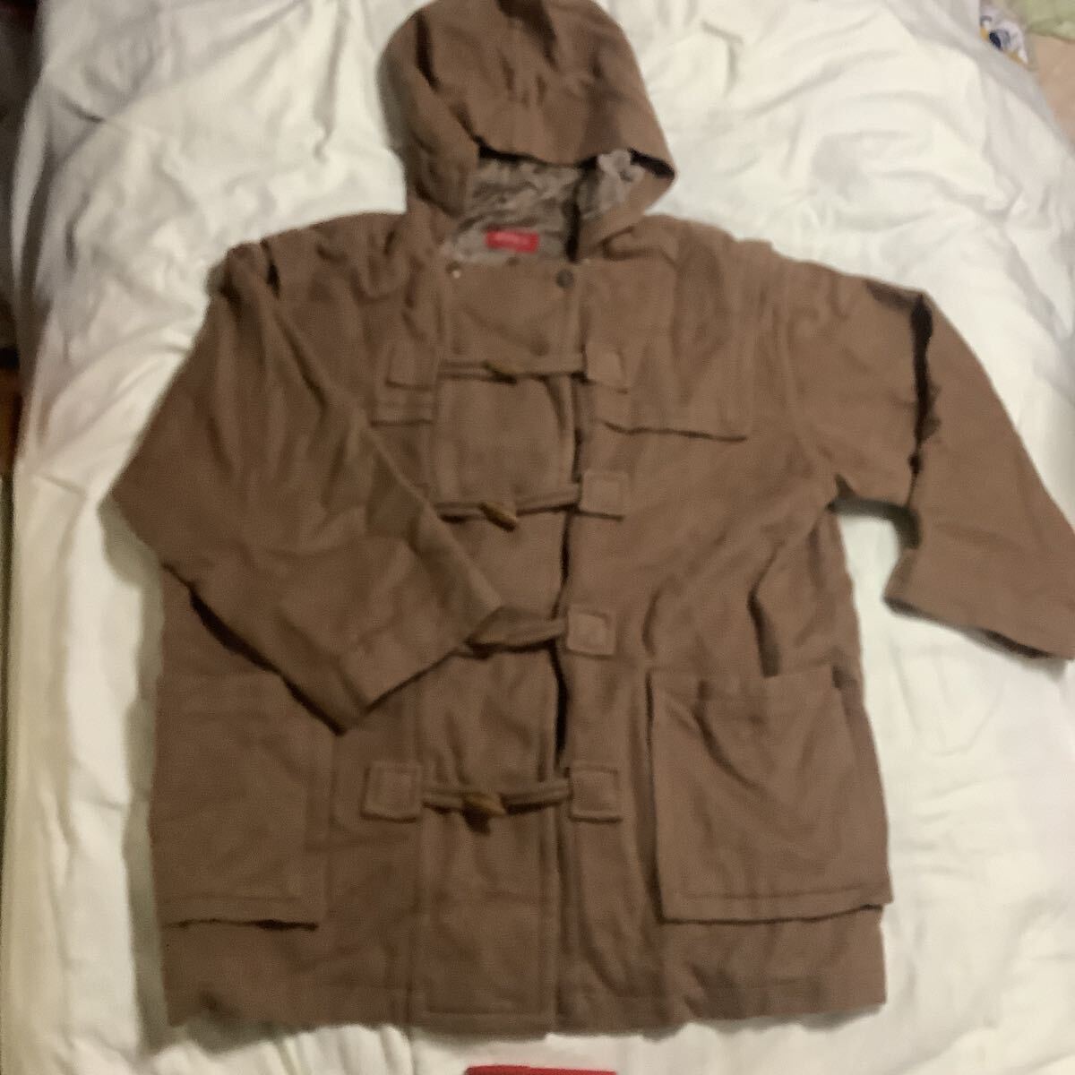 - コート ダッフルコート 500円超10%オマケ 実測肩幅59身幅71着丈82袖51cm タグ無 羊毛かも? ポケット2個 茶色 dorothee bis 80