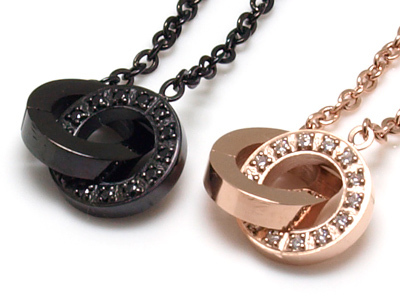 - ★人気★金属アレルギー&温泉&海水浴ご使用OK★ステンレスペアネックレス★ピンクゴールドリングジルコニア&ブラックリングジルコニア★