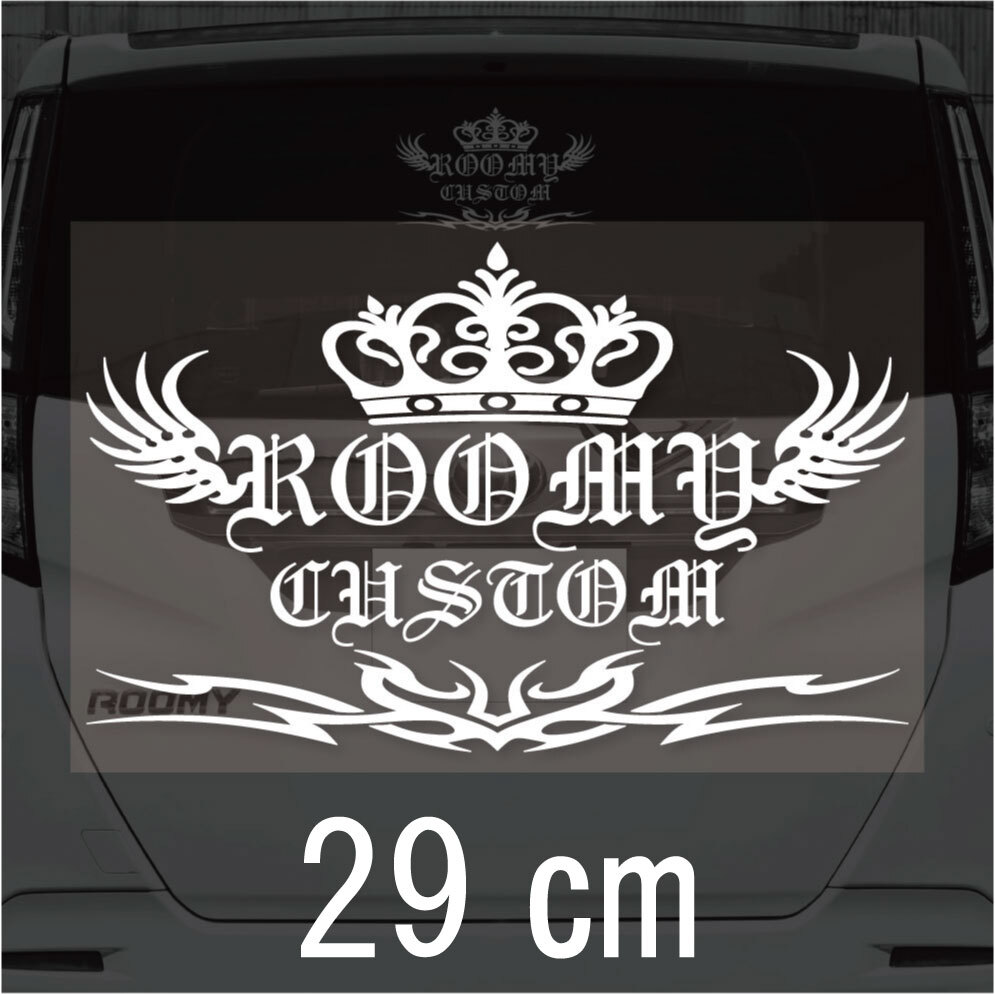 - 29㎝ ルーミーカスタム 王冠 羽 トライバル カッティングステッカー 転写シール 白色