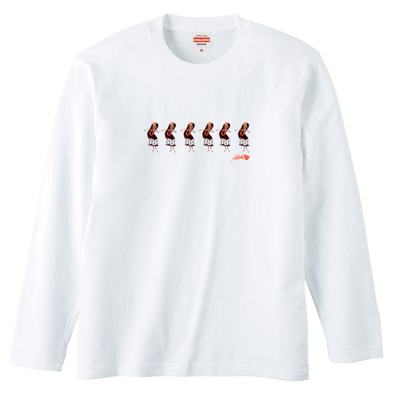 - レディースM対応(タグ表記男女兼用S)/ホワイト*6人フラガールズ&ホヌプリント*長袖/Tシャツ/フラダンス/ハワイ/送料無料【tl022】