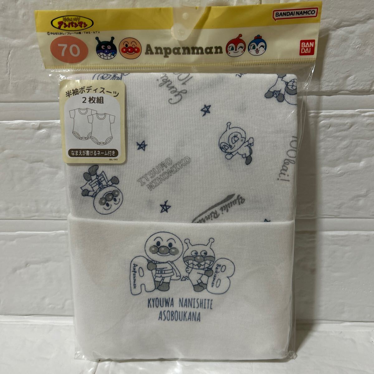 - 70 『アンパンマン』半袖ボディスーツ 2枚組 ロンパース [バンダイ]色: サックス
