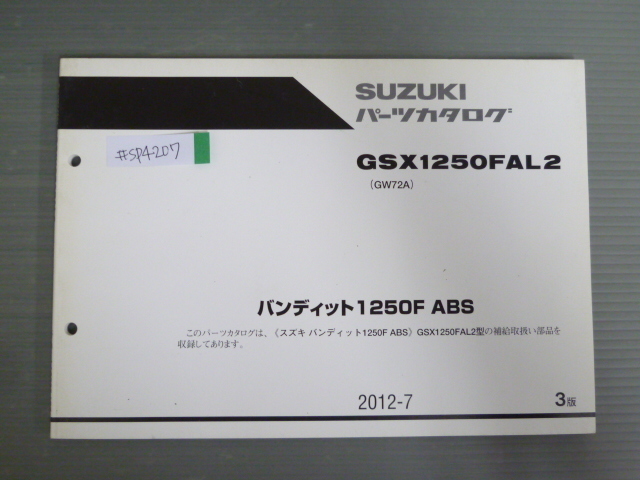 - バンティット1250F ABS GSX1250FAL2 GW72A 3版 スズキ パーツリスト パーツカタログ 送料無料