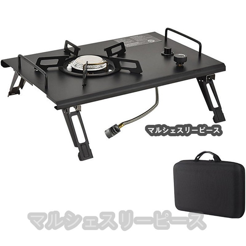 > シングルバーナー 折りたたみ式ガスストーブ キャンプ用カセットストーブ 4000W 軽量 アウトドアストーブ IGT卓上コンロ 調理器具 ブラック