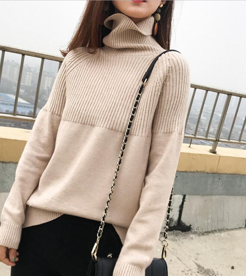 - 秋冬美品*カジュアル 無地 ニットトップス ゆったり ハイネック 柔らかい ストレッチ 長袖 ニットセーター 着痩せ 通勤 セーター*杏
