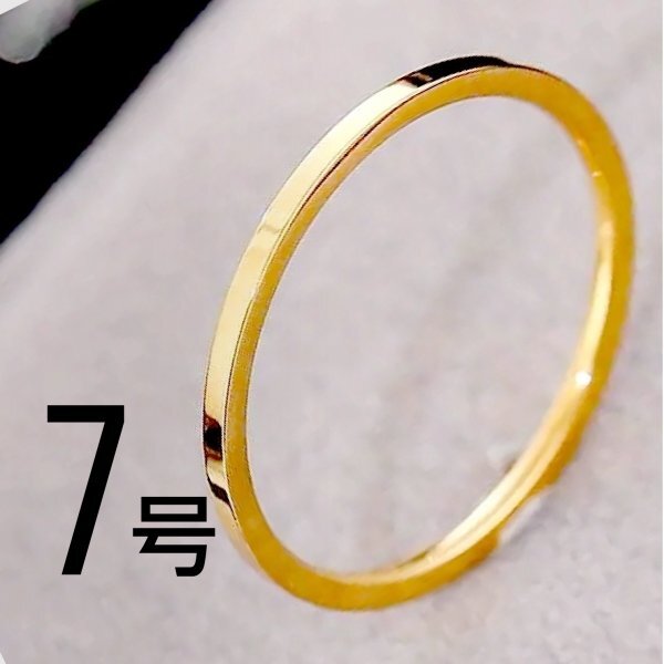 - J012-2 ステンレス1mm平打ちリング ゴールドカラー 7号