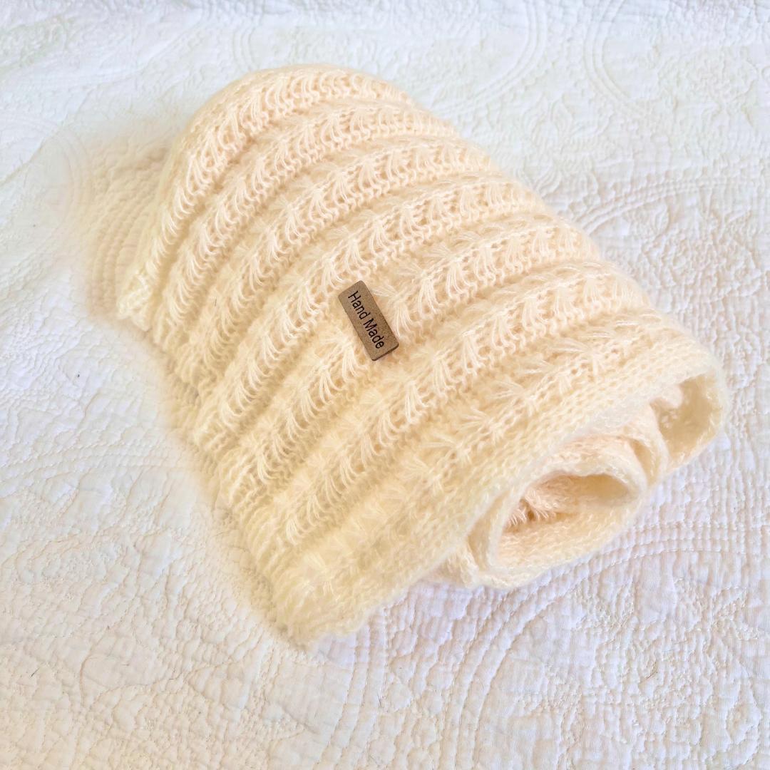 - z23 手編みのようなふわふわマフラー アイボリー カスタードクリーム おしゃれ