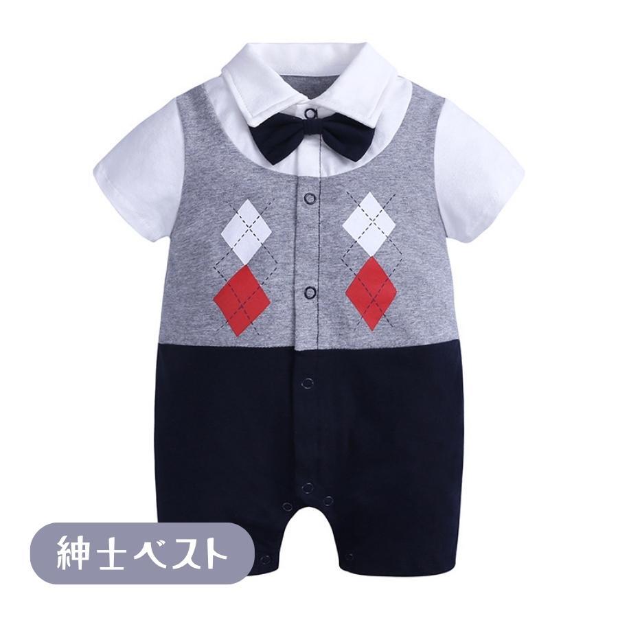 - コスプレ 半袖 5分丈 ロンパース やわらか素材 デザイン柄 韓国子供服 おしゃれ 乳幼児 キッズ ベビー服 (73, 紳士ベスト)