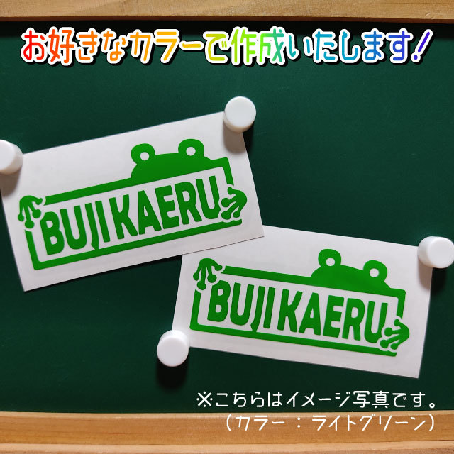 > ブジカエル22ステッカー2枚組 文字絵柄だけ残るカッティングステッカー・交通安全・安全祈願・車・バイク・カブ・リアガラス