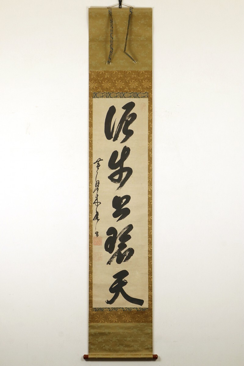 - 【真作】掛軸「木庵性瑫 泥牛上碧天 一行」江戸前期 書 渡来禅僧 黄檗三筆