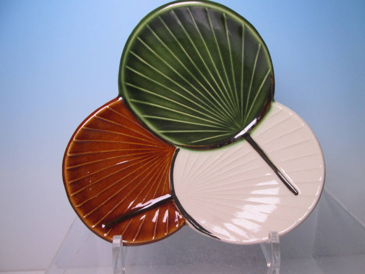 - ☆お料理屋さんの器 南明窯 三色団扇 向付 箱無し 懐石/割烹/日本料理