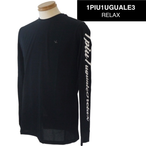 > 【SALE】1PIU1UGUALE3 RELAX ウノピゥウノウグァーレトレ リラックス プリントロングTシャツ XLサイズ 055-黒系