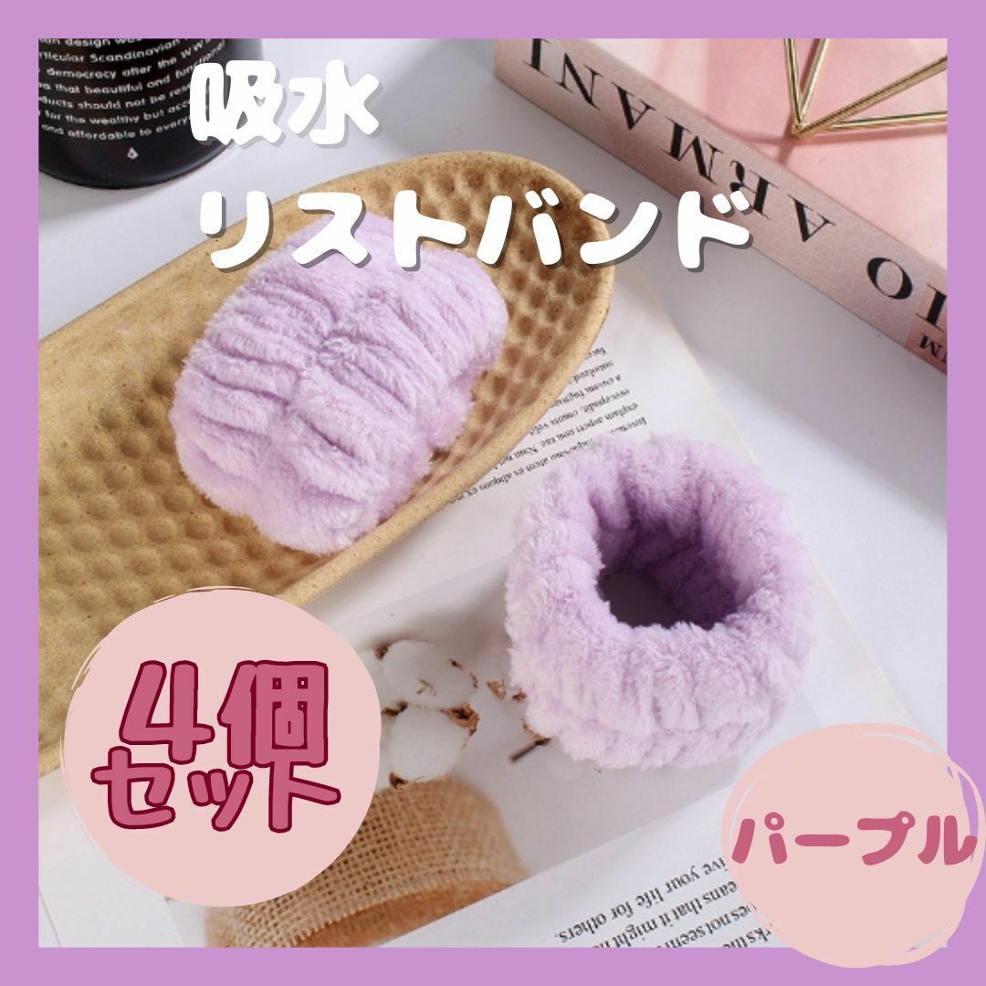 - 吸水リストバンド 水切りバンド 大人気 洗顔 吸水バンド ふわふわ パープル