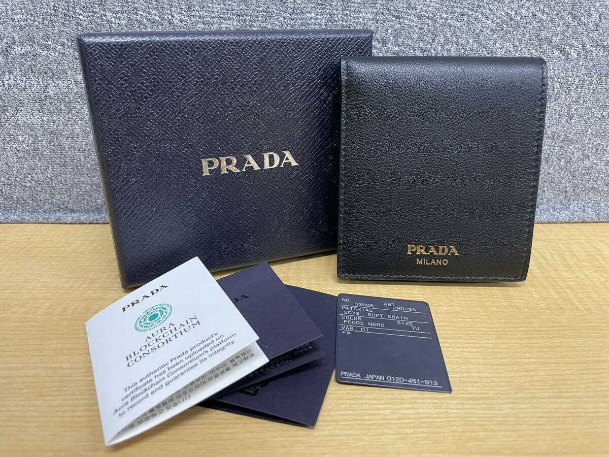 > 未使用プラダPRADA 2M0738 SOFT CALF COMPACT WALLET★二つ折りサイフ黒ウォレット★B2426