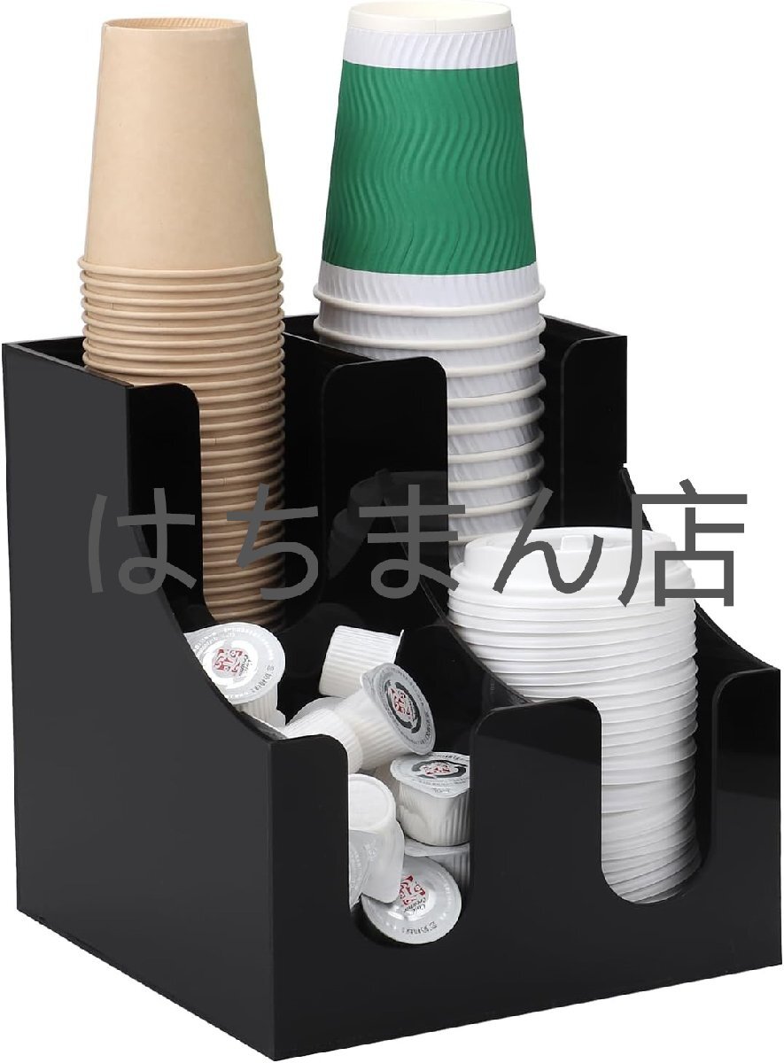 - 使い捨てカップディスペンサー 紙コップホルダー カップスリーブホルダー 4グリッド アクリル製 業務用 ブラック
