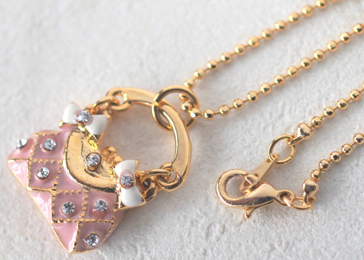- 可愛い ラインストーン リボン付き ピンクのバッグ ネックレス
