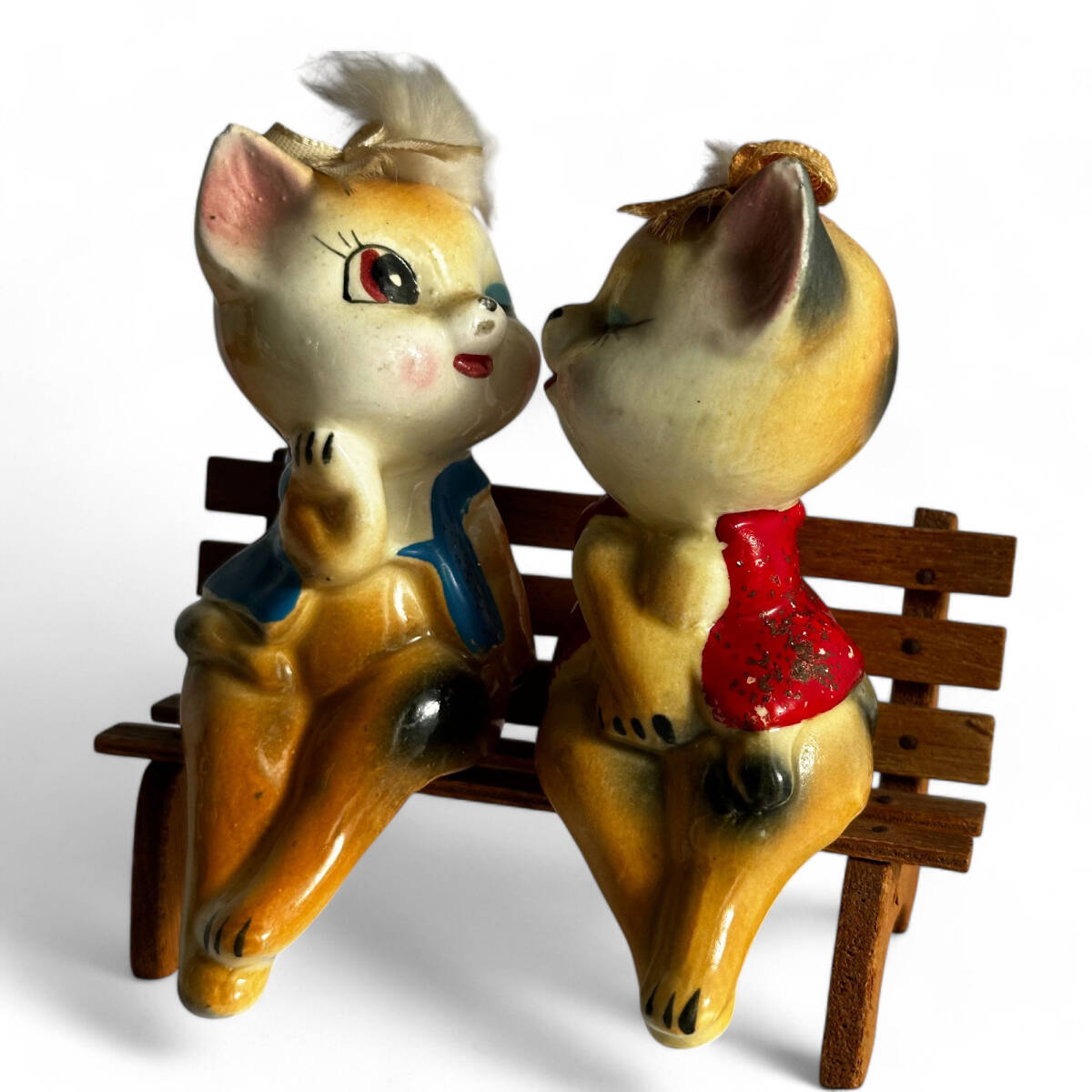 - N2260 当時物 レトロアニマル 陶器 フィギュリン ネコ ふわふわ付 昭和レトロ