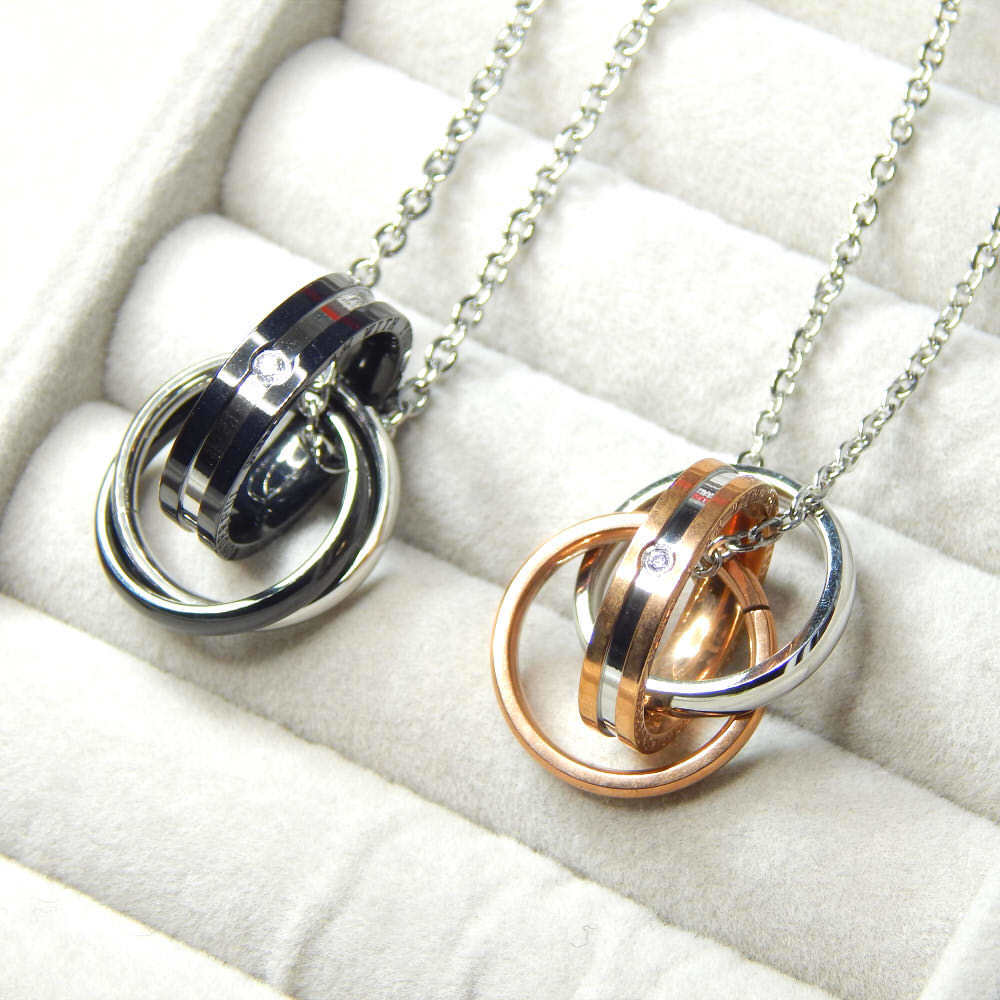 - Alnair ブランド★人気 ダブルリングペアネックレス サージカルステンレス316L レディース/メンズ ジルコニア CZダイヤモンド 刻印
