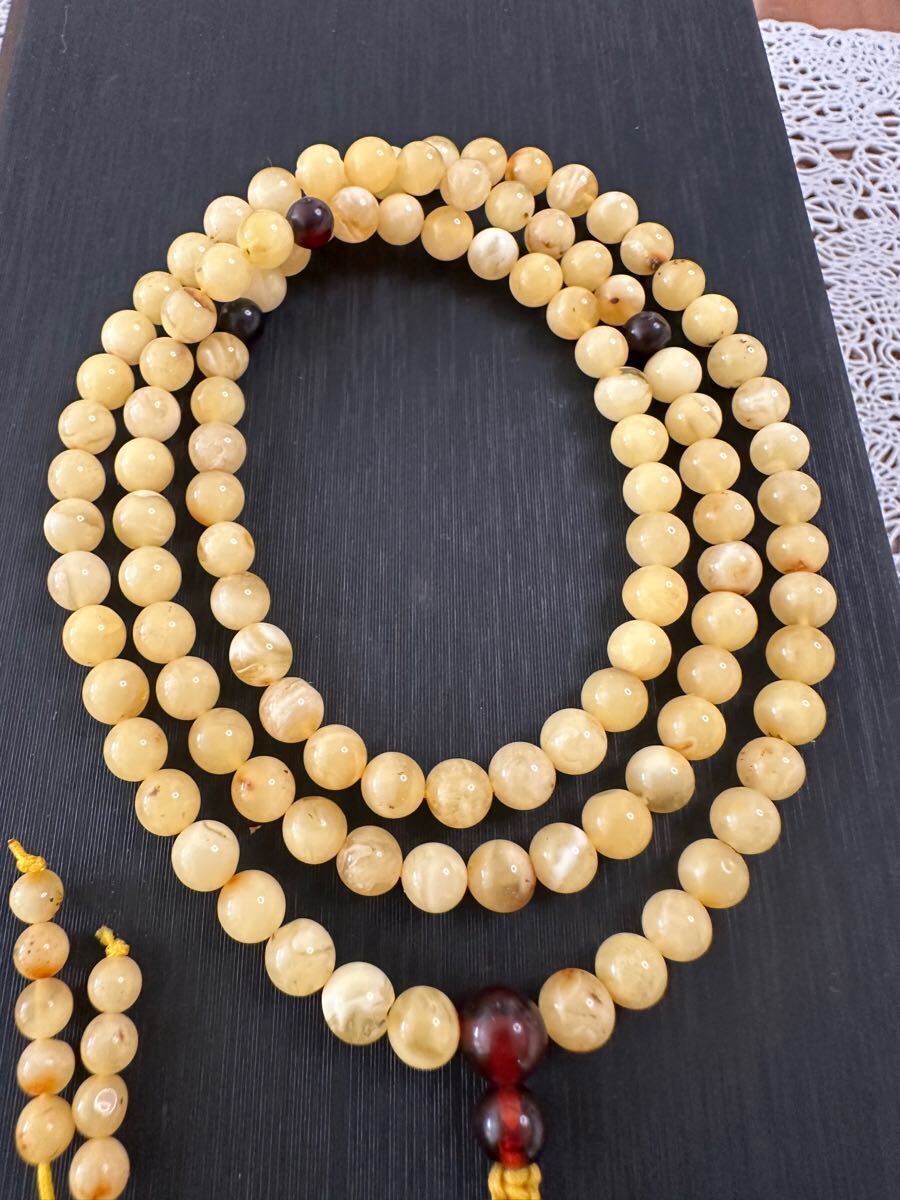 - Z-672 天然 アンバー 本琥珀 ミルキィ ネックレス兼ブレスレット108粒