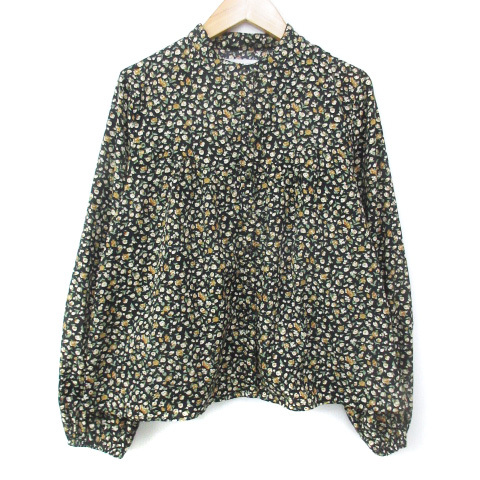 > ニコルクラブ イチナナキュウダブルジー シャツ ブラウス 長袖 バンドカラー 花柄 マルチカラー 38 M 黒 白 ブラック レディース