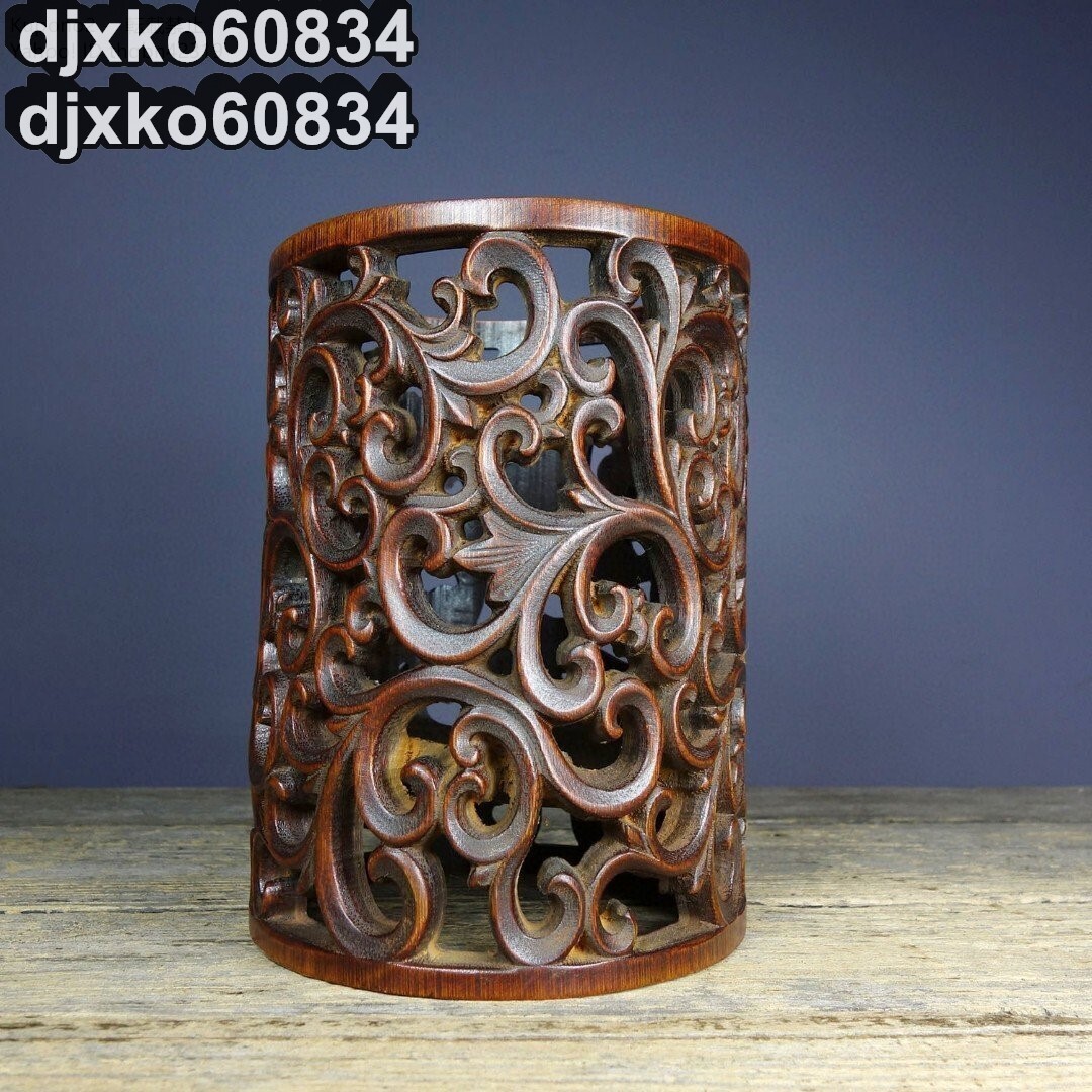 - 高級製品★ ペン立て 筆筒 筆立 筆桶 書道具 竹彫刻 花草 透かし彫り 彫刻 書道具