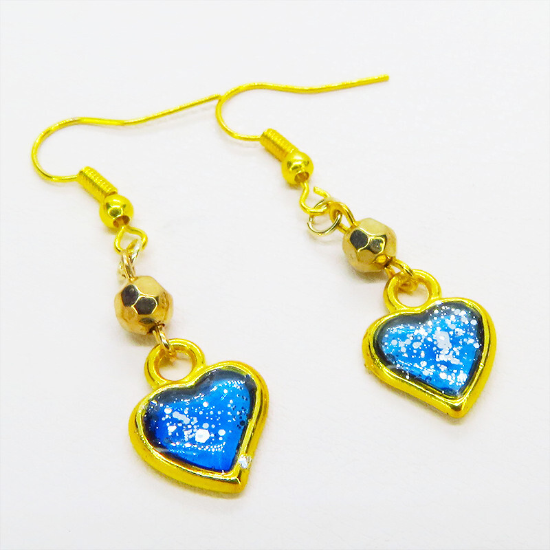 - ゴールドカラー ブルーハートのコンパクトなピアス レジン サージカル可