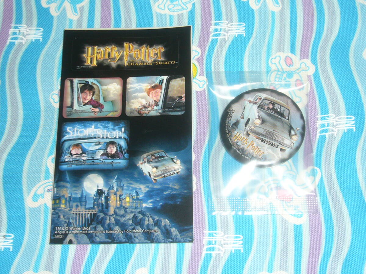 - 2002年 ハリーポッター 缶バッジ & シール セット / 空飛ぶ車(フォード・アングリア)