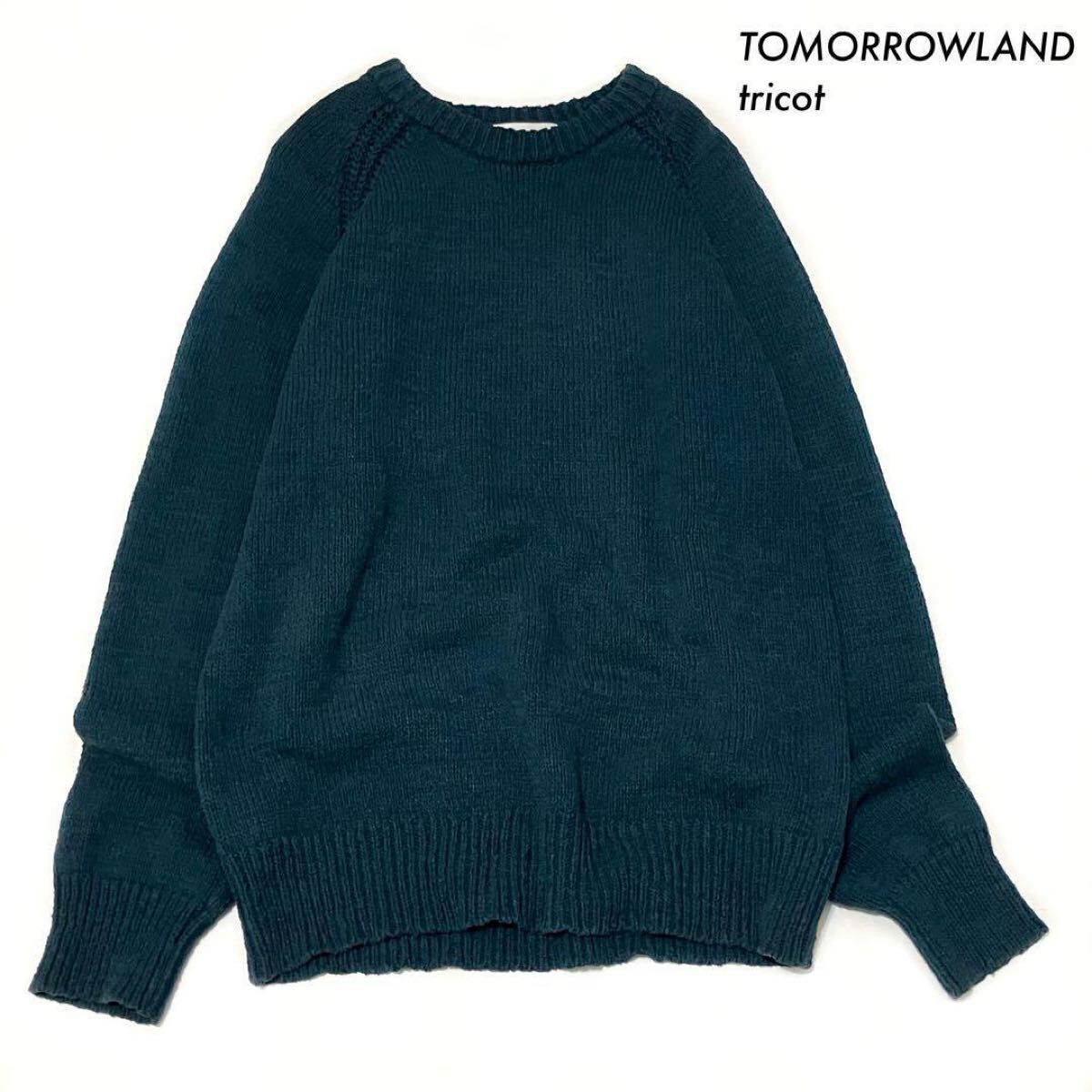 - 【送料無料】TOMORROWLAND tricot★長袖ニット セーター ラグラン切替 ダークグリーン トゥモローランド