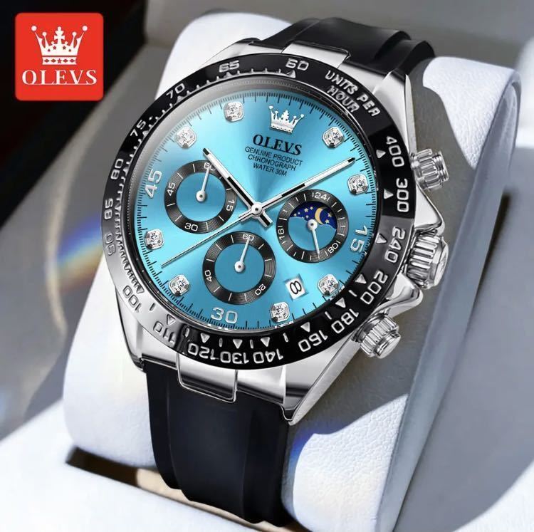> メンズ腕時計 クロノグラフ アナログ腕時計 ストップウォッチ 防水腕時計 ブラック ジルコニア ステンレス 1723ラバーベルト1点のみ