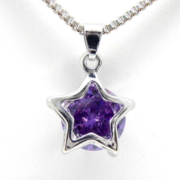- 即決★送料無料★新品未使用 極上の逸品 星 CZアメジストダイヤモンドネックレス ジルコニア シルバー925 プラチナ仕上 訳有品 XN-A15