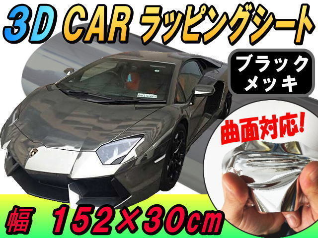 > メッキラッピングシート (30cm) 黒 幅152cm×30cm カーボディ メタル調フィルム クローム メッキ 鏡面ミラー調 伸縮ビニール ブラック 4