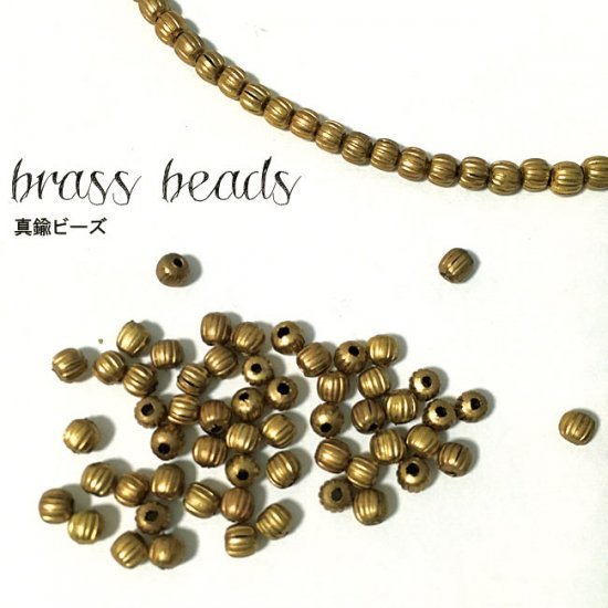 - 真鍮 味わいのある縦ライン入り ラウンドビーズ 100個以上入り 10g