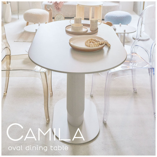 - 【ダイニングテーブル】 角丸 シンプル コンパクト スリム 食卓 机 テーブル デスク カフェ 1本脚 オーバル型 ホワイト 白 クラシック