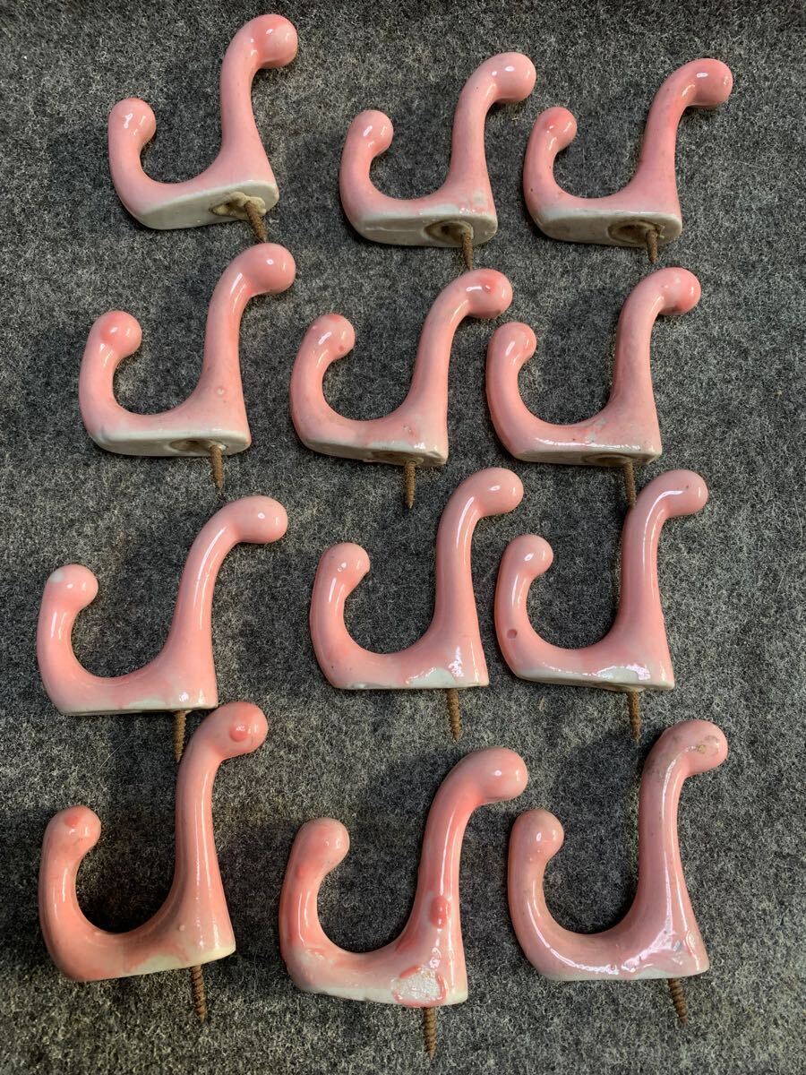 - 珍品 希少 陶器 ピンク フック 12点 コート掛け 帽子掛け 昭和レトロ 洋館古民家 白磁 陶器製 レトロ アンティーク 洋館 古民家