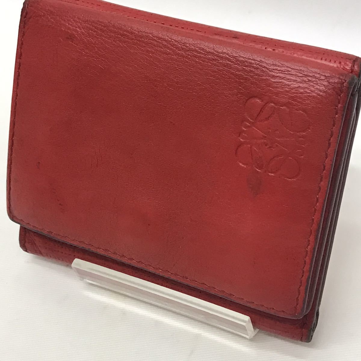 - LOEWE ロエベ 三つ折り 財布 赤系 朱色系 レザー コンパクト ウォレット ミニ レッド