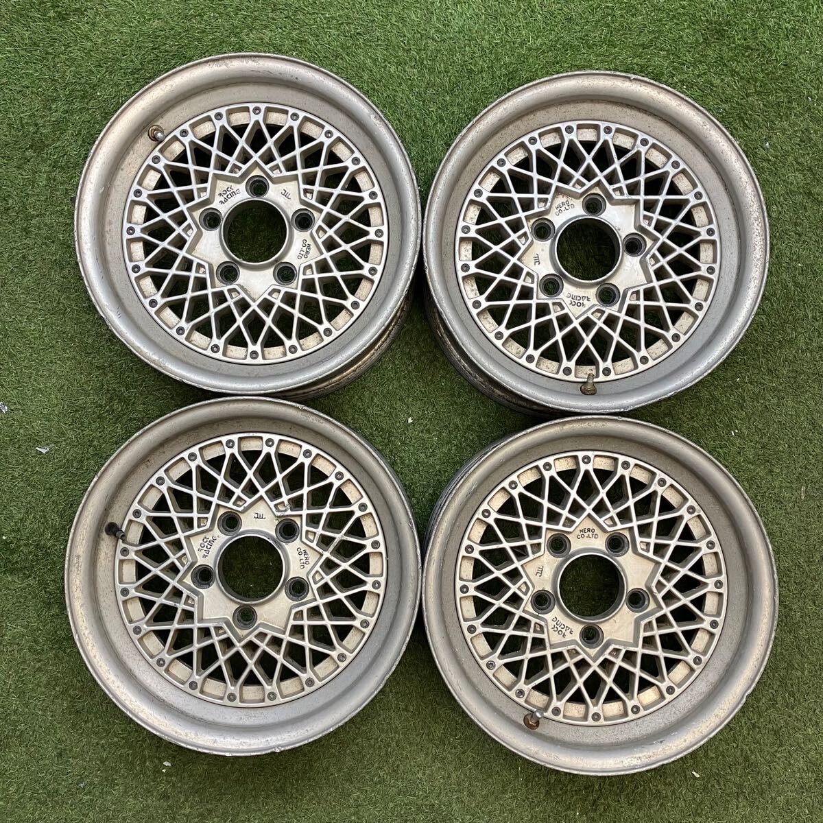 > 【0571】★旧車 深リム★14インチ 6-J HERO ROCK RACING 1983 6-J×14 ET+14 PCD114.3 5穴 ハブ径74 中古アルミホイール4本